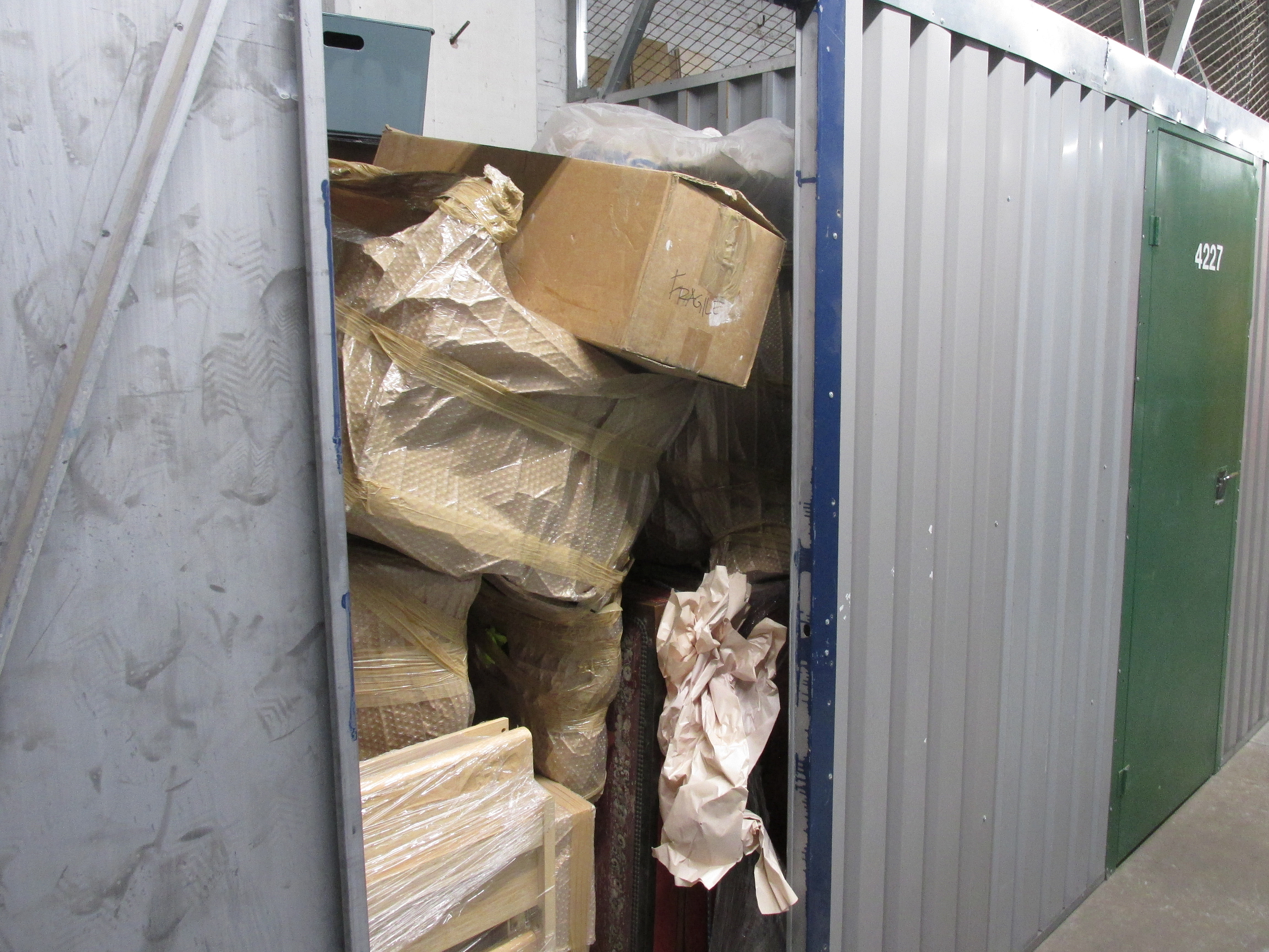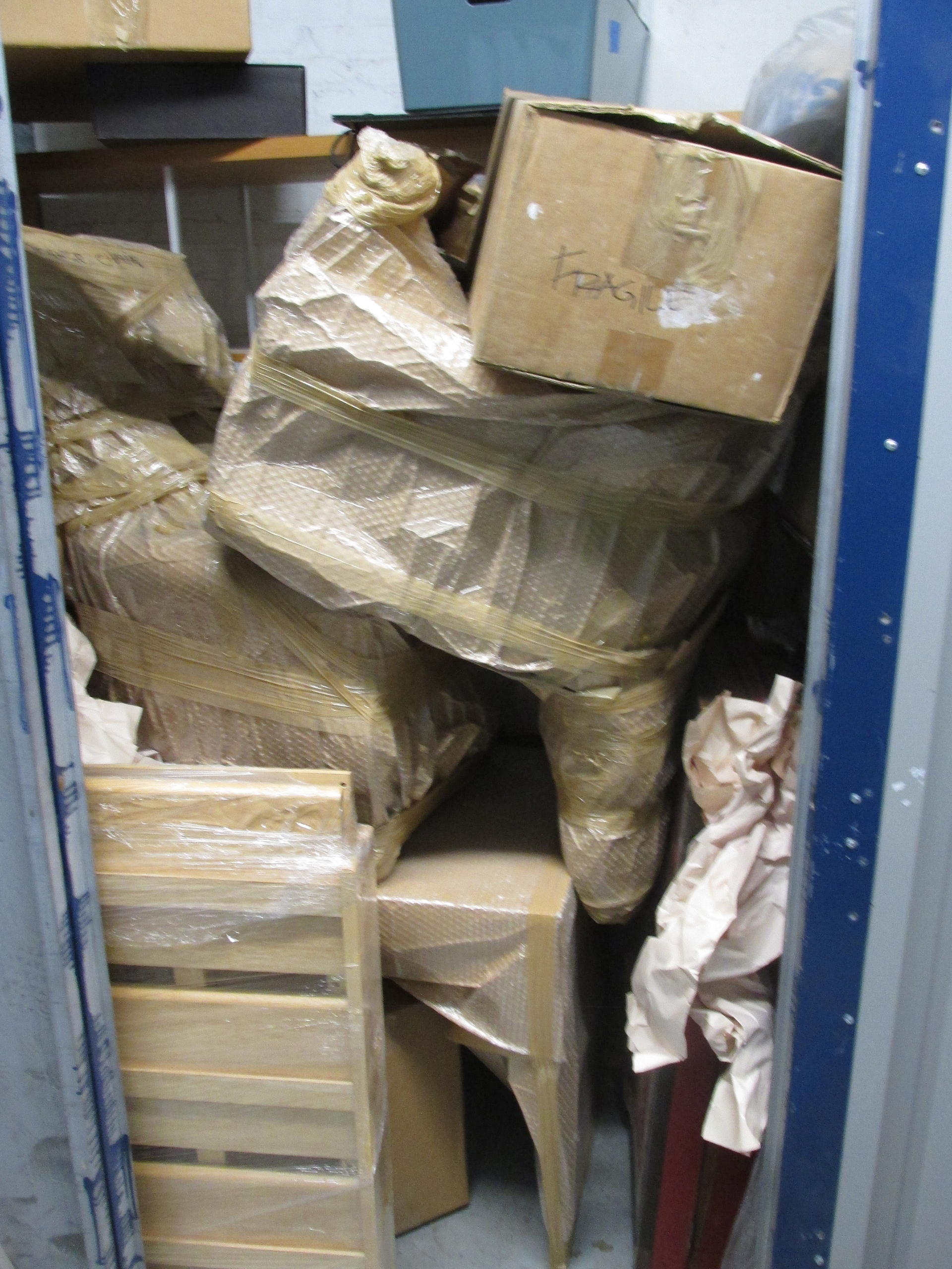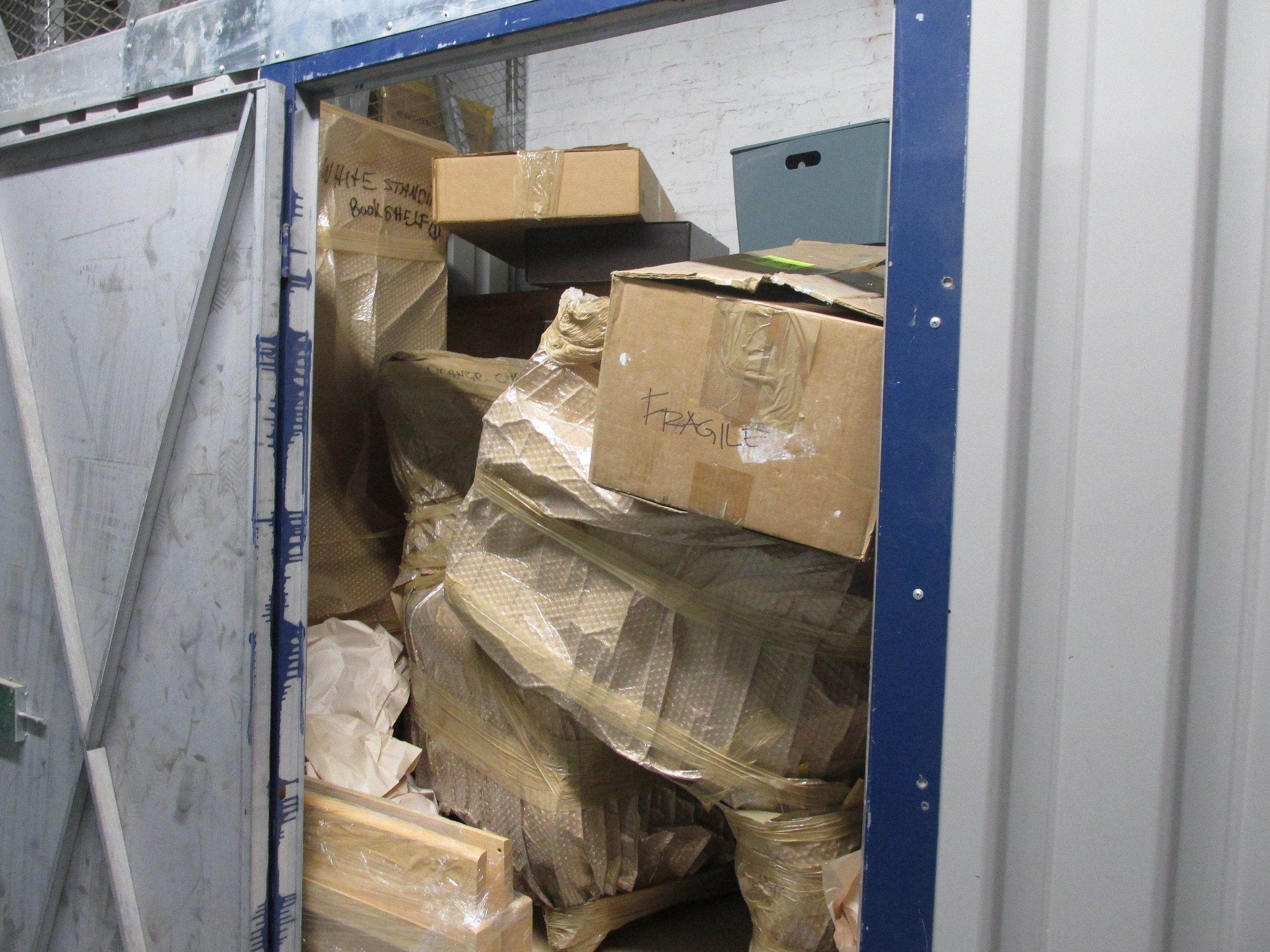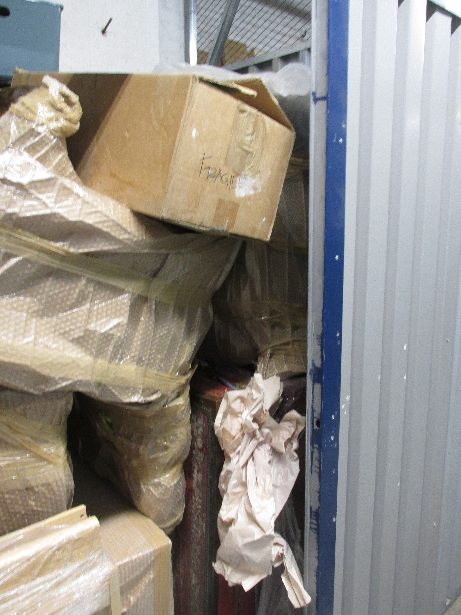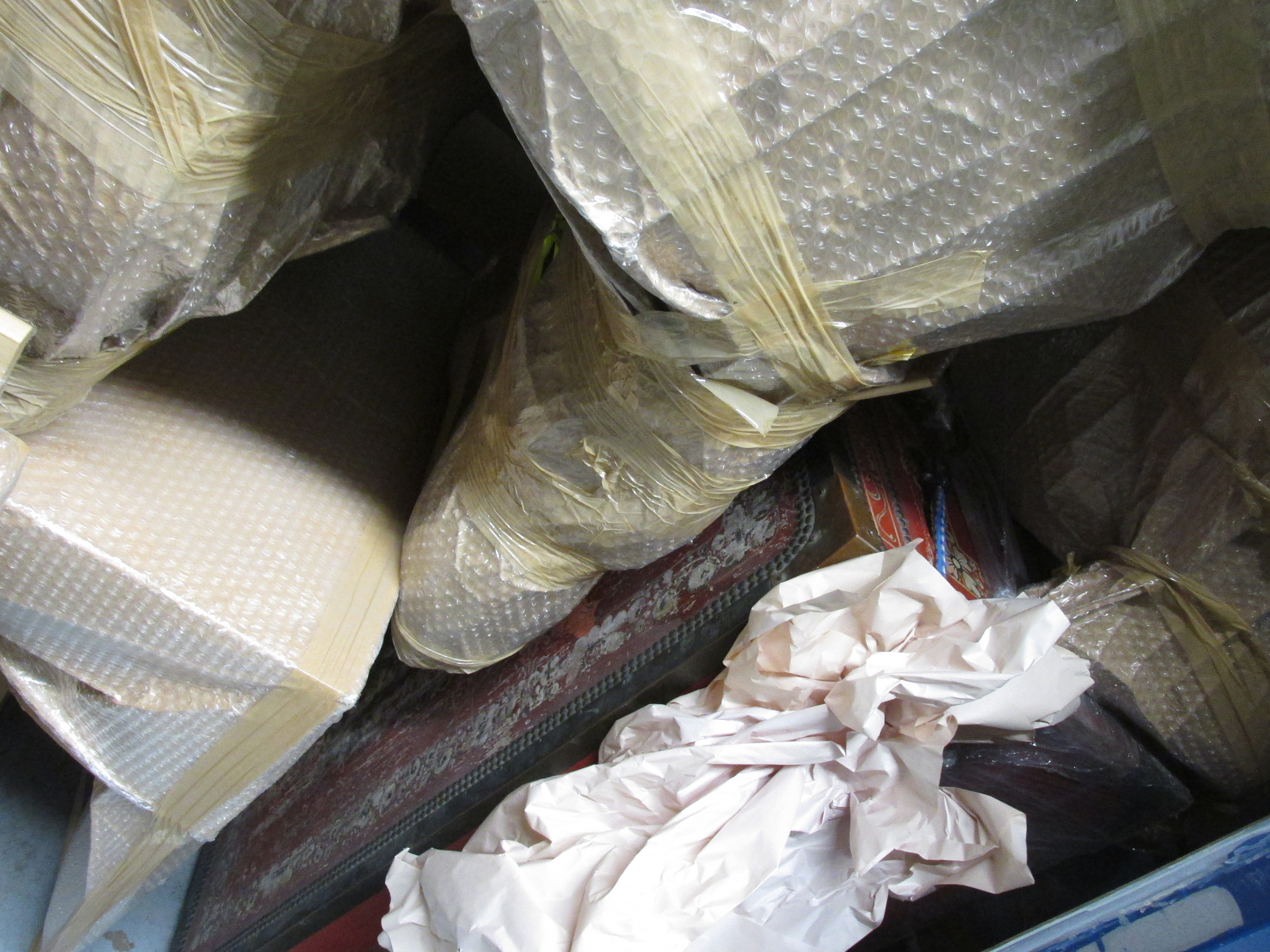 (5x6) Wrapped furniture, cartons, small chest, file box, crated item.